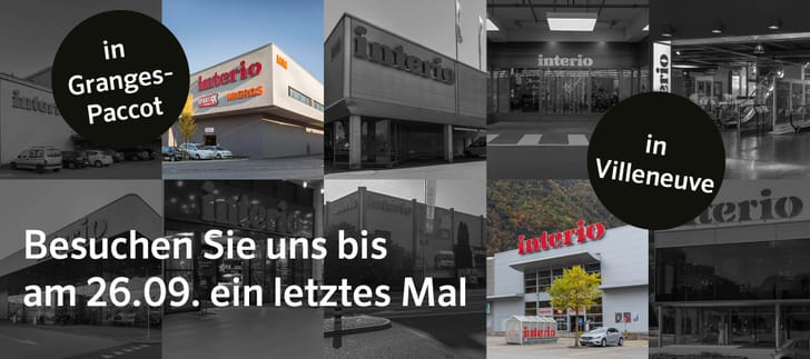 Wir befinden uns auf der Zielgeraden. Momentan sind nur gerade noch 2 Filialen für Sie da. Trotzdem, ein Stück Interio wird auch nach der endgültigen Schliessung erhalten bleiben: So werden ausgewählte Interio-Bestseller ab Herbst 2020 ins Sortiment von Micasa aufgenommen. Zudem übernimmt Micasa auch laufende Garantien auf Interio-Produkte.